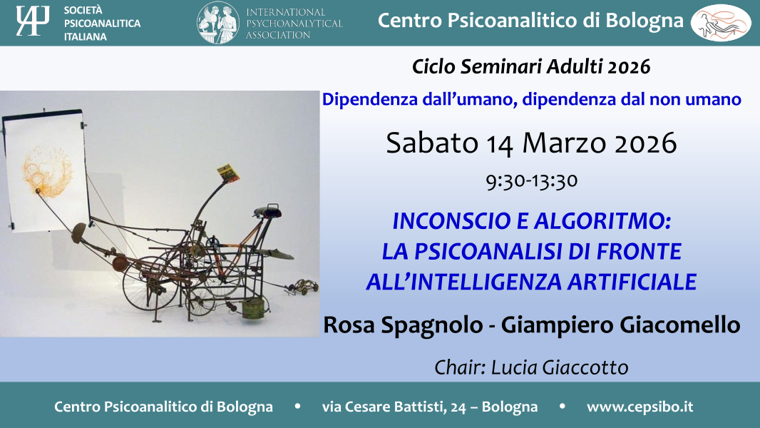 III seminario Adulto 14-03-2026: "Inconscio e algoritmo: la psicoanalisi di fronte all’intelligenza artificiale" Rosa Spagnolo, Giampiero Giacomello