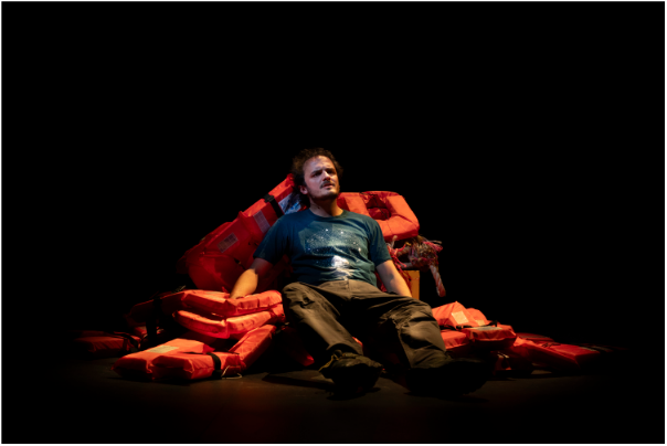 Lo spettacolo A Place of Safety possiede un’architettura essenziale. Sulla scena solo due attori, Nicola Borghesi ed Enrico Baraldi della compagnia teatrale Kepler-452. Accanto a loro non compaiono personaggi immaginari, ma presenze reali: operatori della nave Sea-Watch 5, impegnata nelle operazioni di soccorso nel Mediterraneo e sulla quale gli attori si sono imbarcati nell’estate del 2024. Sono persone che, nel loro lavoro quotidiano, incontrano il mare nel suo punto più fragile: là dove il Mediterraneo, tra Libia e Lampedusa, diventa una soglia instabile, spesso tragica. Accanto agli attori troviamo Miguel Duarte, capo missione; Josè Ricardo Pena, elettricista e figlio di immigrati messicani; Floriana Pati, infermiera; Flavio Catalano, ex militare della marina in pensione, entrambi ora impegnati sulla nave di Emergency; e Giorgia Linardi, portavoce di Sea-Watch.