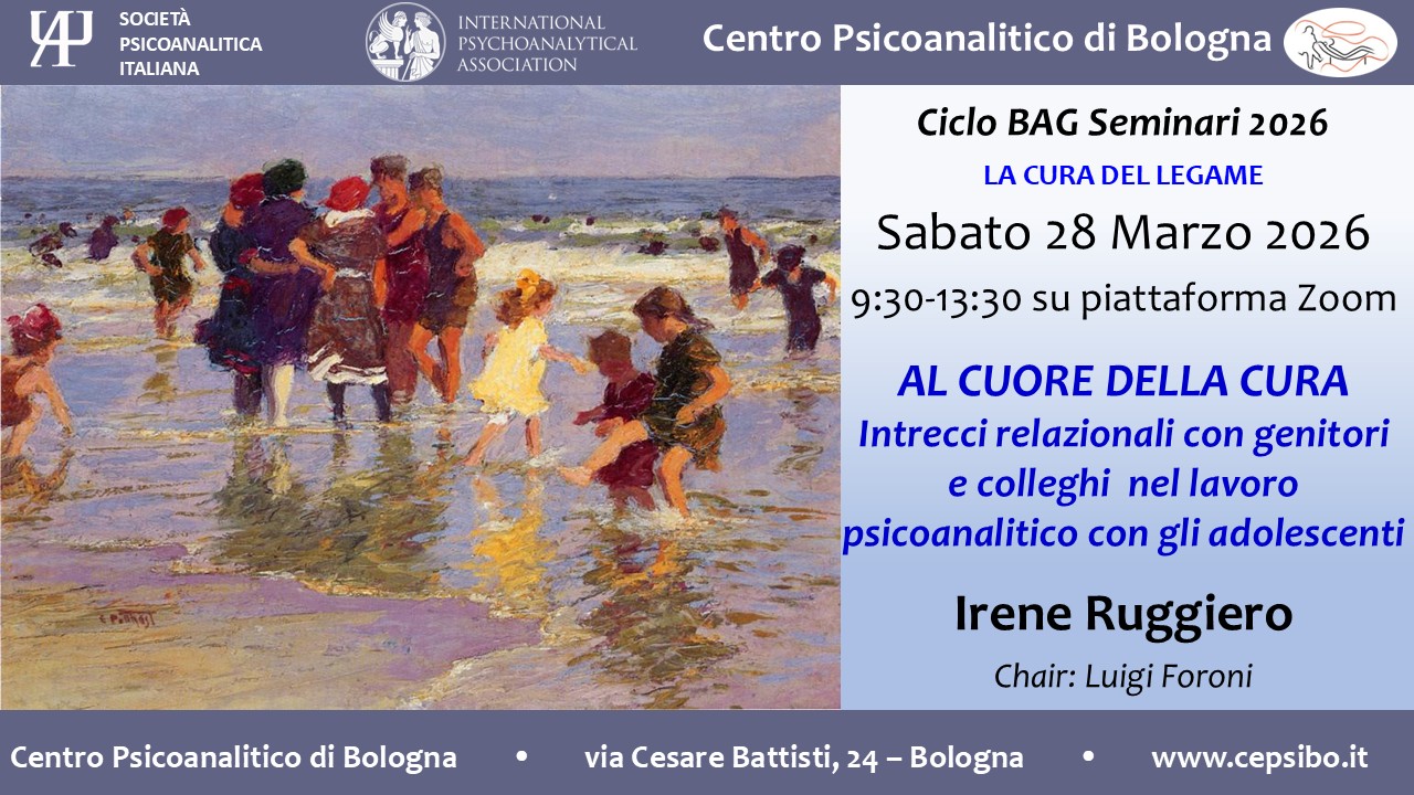 III seminario BAG 28-03-2026: "Al cuore della cura: intrecci relazionali con genitori e colleghi nel lavoro psicoanalitico con gli adolescenti" Irene Ruggiero